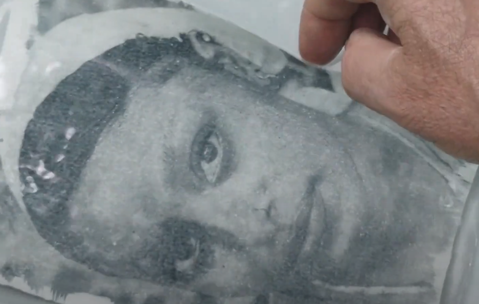 - Mixture “A” is made by mixing 3ml of 5% gelatin (gently warmed) with 2ml of 6% FAC and 0.25g of pigment (Schmincke Helio Cerulean or Windsor & Newton Permanent Carmine).